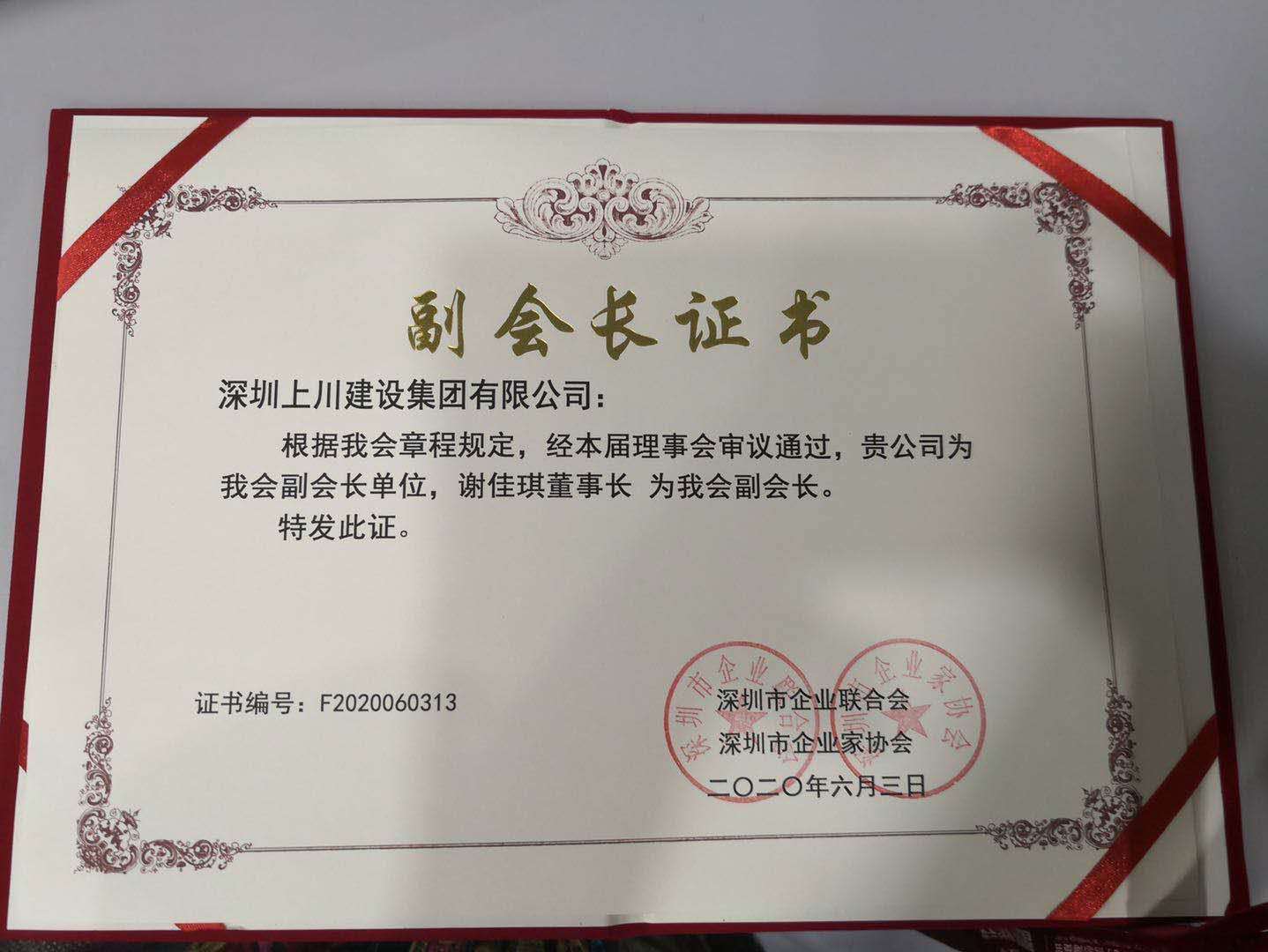 信譽的見證,上川建設集團董事長當選為深圳市企業聯合會及企業家協會副會長!